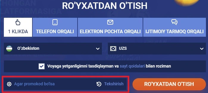 Чтобы воспользоваться огромными и разнообразными возможностями в Узбекистане, игрокам необходимо как можно скорее зарегистрироваться на официальном сайте. Существует несколько способов зарегистрировать аккаунт: